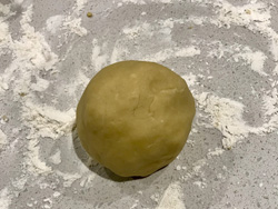Mix alle ingrediënten (behalve voor één eierdooier) and kneed totdat het mooi vlak is.