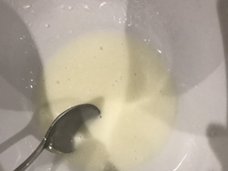 - In de tussentijd, terwijl de beschuitjes aan het bakken zijn, mix je 100g poedersuiker met 4 eetlepels limoensap en de topping is klaar!